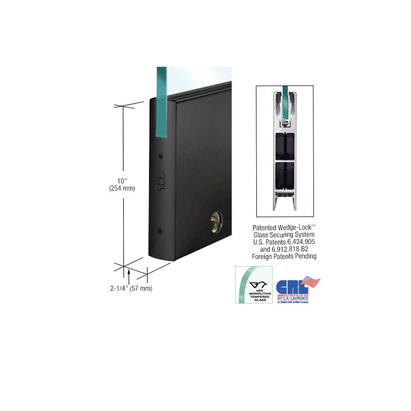DR10SDU34SL CRL Profil de porte carr, avec serrure, 254 mm (10 po), verre de 19,1 mm (3/4 po) d'paisseur, 910 mm (35-3/4 po) de longueur, bronze anodis noir