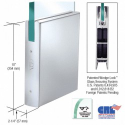 Notre Système de profilé de porte innovateur Wedge-Lock CRL<\b> est doté du système de fixation exclusif Wedge-Lock CRL (Brevets américains 6,434,905 et 6,912,818 B2; brevet Canadien 2,419,706 et européen EP 1 404 939 B1) Un concept entièrement nouveau pour fixer le verre dans le profilé de la porte. Fonctionne en appliquant une pression sur la partie inférieure du profilé de porte, à l'aide de deux profilés de retenue de verre en aluminium actionnés par une barre plate en acier inoxydable. Lorsque cette barre est abaissée à l'aide des boulons à six pans creux, une pression est appliquée sur les profilés de retenue du verre en aluminium. L'angle de la partie inférieure des profilés correspond à la rainure en angle du profilé de la porte. Lorsque les profilés de retenue du verre sont abaissés, le coin en biais du profilé de la porte permet de rassembler les profilés de retenue du verre. Cette action, accompagnée de notre joint de fixation spécial pour porte, permet de générer une force considérable (plus de 408,23 kg - 900 livres) au niveau de notre profilé d'angle de 228,6 mm (89 po). Cela correspond à 100 psi (0,07 kg/mm2) Imaginez l'intensité de la force exercée sur nos profilés de porte de 908 mm (35-3/4 po) de long (pleine longueur) !
