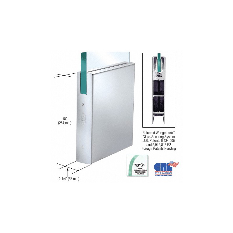 DR10SSA12S CRL Profil de porte carr, sans serrure, 254 mm (10 po), verre de 12,7 mm (1/2 po) d'paisseur, anodis satin - 910 mm (35-3/4 po) de long