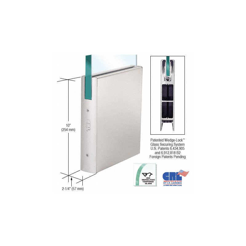 DR10SSA12S CRL Profil de porte carr, sans serrure, 254 mm (10 po), verre de 12,7 mm (1/2 po) d'paisseur, anodis satin - 910 mm (35-3/4 po) de long