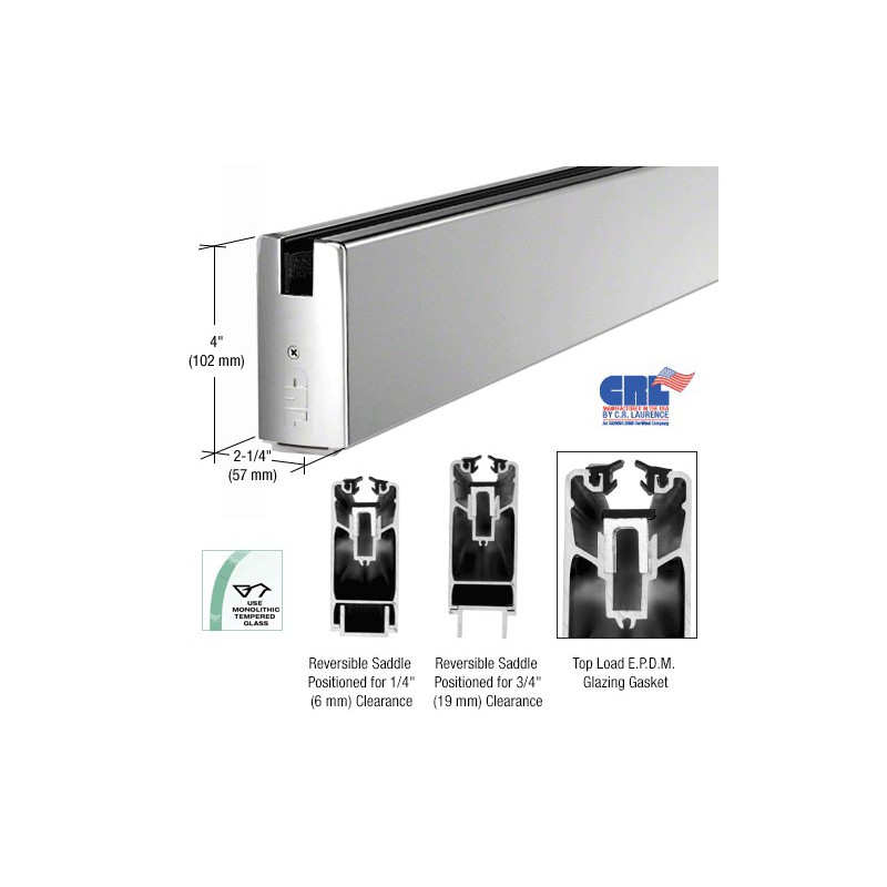 SR4SPS34CL CRL Profil de partition fixe carr, 102 mm (4 po), verre de 102 mm (4 po) d'paisseur, longueur sur mesure, acier inoxydable poli