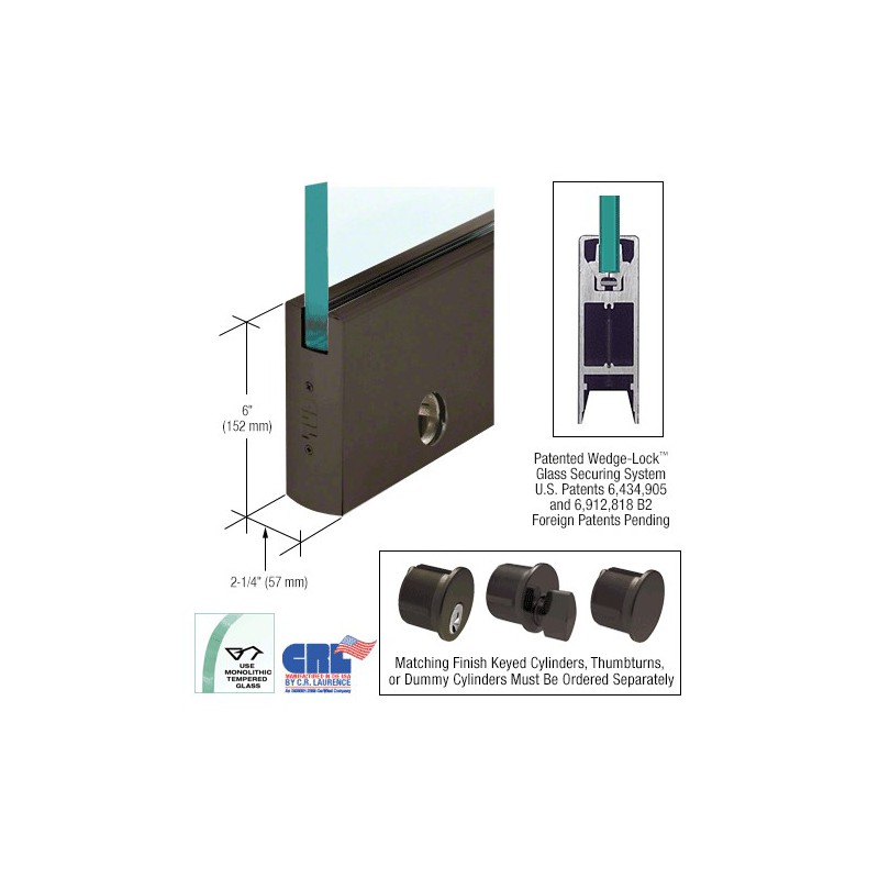 DR6S0RB34CL CRL Profil de porte carr, avec serrure, 152 mm (6 po), verre de 19,1 mm (3/4 po) d'paisseur, longueur sur mesure, bronze frott l'huile