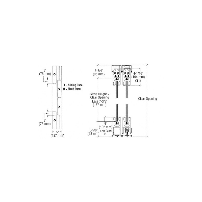 4SDR4FSA CRL Systme de porte d'entre coulissante, format OXXO, profils infrieur et suprieur carrs, 102 mm (4 po), anodis satin