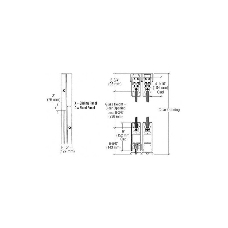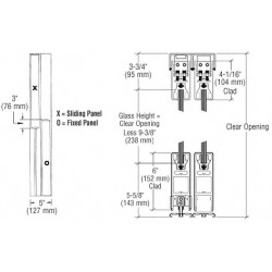 6SDR2CPB CRL Systme de porte d'entre coulissante, format XO/OX, profil suprieur carr de 102 mm (4 po), profil infrieur carr de 152 mm (6 po), laiton poli