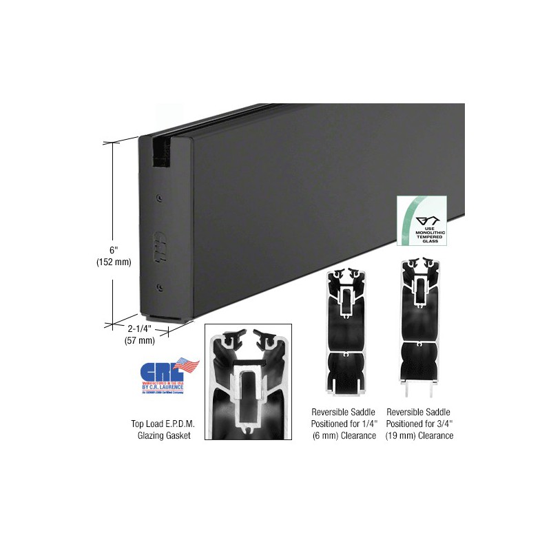 SR6SBL34SL CRL Profils de partition fixe carrs, 152 mm (6 po), verre de 102 mm (4 po), 3,05 m (120 po) de longueur, pulvrisation noire