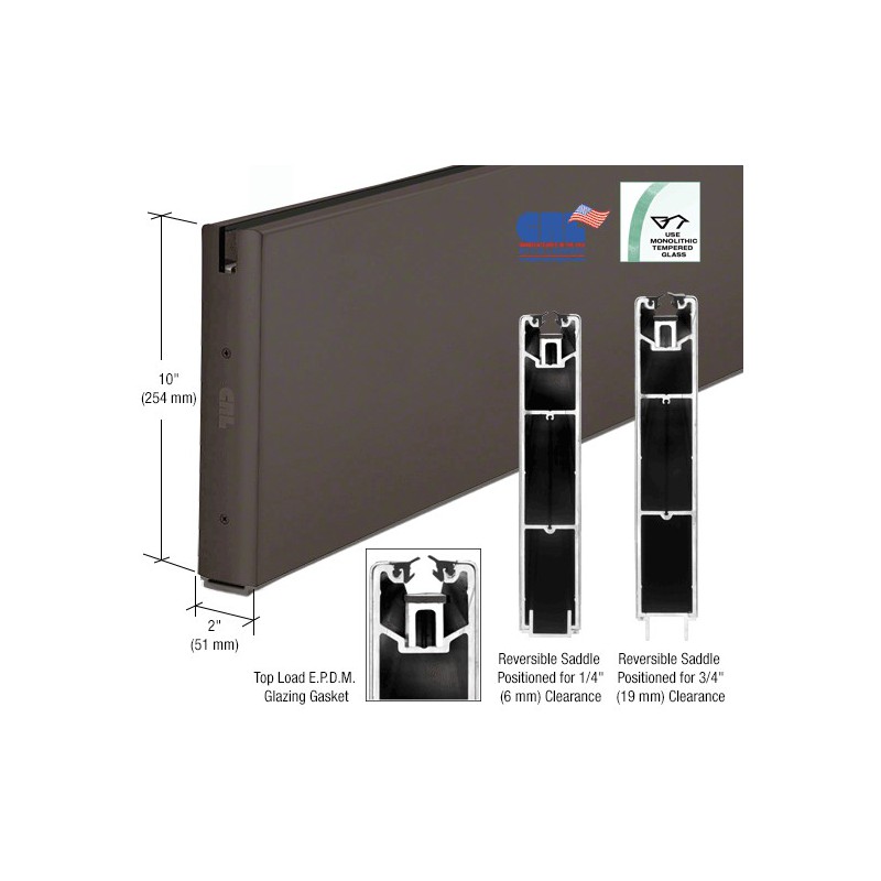 SR10SDU3812CL CRL Profil de partition fixe carr, 254 mm (10 po), verre de 9,5 ou 12,7 mm (3/8 ou 1/2 po) d'paisseur, sur mesure, bronze anodis noir