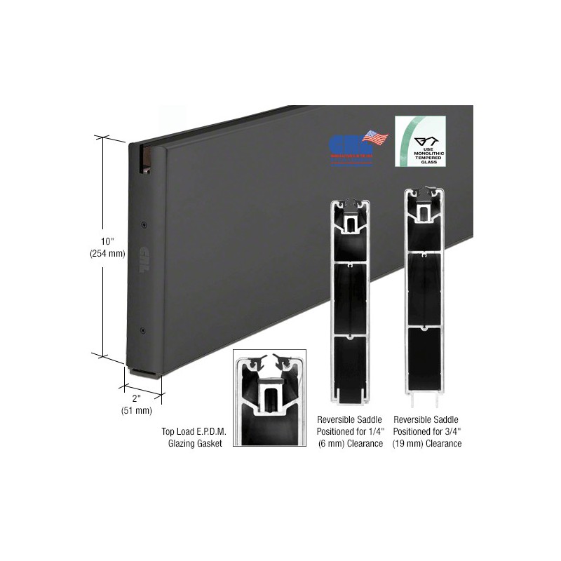 Les profilés de partition fixe carrés de 254 mm (10 po) CRL sont assortis au profil de nos profilés de porte carrés de 254 mm (10 po), conférant à l'installation un style harmonieux. Grâce à notre barre de seuil réversible, ces éléments peuvent s'adapter aux portes montées au sol et aux seuils de 12,7 mm (1/2 po). Utilisez les profilés de partitions fixes seuls comme profilés supérieurs, et utilisez-les avec nos cales d'assise en aluminium et néoprène pour soulever le verre dans le profilé supérieur et l'abaisser dans le profilé inférieur. Cela permet une fixation de 14,3 mm (9/16 po) dans les profilés supérieurs et inférieurs. Le joint de calfeutrement de vitrage à pression pour verre de 12 mm (1/2 po) d'épaisseur est fourni. Les joints de calfeutrement de vitrage à pression pour verre de 10 mm (3/8 po) d'épaisseur et les embouts sont vendus séparément. Notre politique sur les produits « Quick Pick » est la suivante : Ces produits étant stockés dans notre entrepôt central, votre commande sera expédiée par le prochain camion de réapprovisionnement à l'entrepôt CRL de votre région. Les camions de réapprovisionnement effectuent des livraisons chaque semaine. Par conséquent, si l'article que vous souhaitez n'est pas disponible dans l'entrepôt de votre région, votre commande peut être livrée en quelques jours. Vous pouvez vérifier la disponibilité de chaque produit CRL en cliquant sur la boîte de dialogue ci-dessus libellée « VÉRIFIER LA DISPONIBILITÉ EN MAGASIN ».