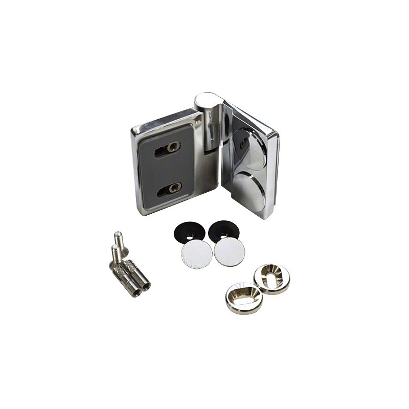 The CRL Riviera Wall Mount Hinge (handed left or right as viewed from outside the shower) will self-close from approximately 60 degrees, and will hold open at 90 degrees. As the door opens, the hinge lifts the glass so the sweep will not bind at the bottom. Being a gravity type hinge, the weight of the door assists with the self-closing feature. An attractive flush mount fastener is on the rear of the hinge, and the mounting screws are concealed. Made of solid brass and stocked in two finishes. Holes are required in the glass. Riviera Hinges accommodate 3/8" and 5/16" (10 and 8 mm) thick tempered safety glass.