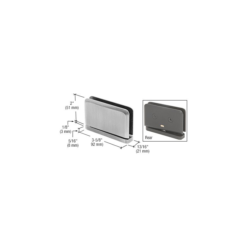 Les charnières professionnelles CRL de la série Prima, modèle axe de rotation n° 2, sont conçues pour une épaisseur de verre trempé de sécurité de 8 à 10 mm (5/16 à 3/8 po). Fabrication en laiton massif ; toutes les pièces mobiles (axes et ressorts) sont en acier inoxydable. Les charnières Prima sont équipées d'un dispositif de centrage automatique à quatre ressorts, pour une force de retenue optimale. Avantages des charnières à pivot : elles supportent une grande partie du poids au niveau de la partie inférieure et peuvent être installées en retrait par rapport au mur, ce qui procure de l'espace pour les porte-serviettes et patères. La série Prima peut s'adapter au système de linteau CRL Deluxe pour des pare-douches dont la hauteur n'atteint pas le plafond. Kit d'axe d'articulation CRL à 5° : L'axe d'articulation à 5° CRL (réf. P1VP1N) permet de modifier la position de fermeture de la porte de 5° et d'assurer ainsi une plus grande étanchéité autour de la douche. La charnière Prima, modèle axe de rotation n° 2, est utilisée avec la charnière CRL Prima, modèle axe de rotation n° 1, afin de garantir une capacité de fermeture identique en haut et en bas. Si vous utilisez deux charnières avec une épaisseur de verre de 8 à 10 mm (5/16 à 3/8 po), veillez à choisir une porte de 45 kgs (100 lb) et de 787 mm (31 po) de large au maximum. Données techniques :