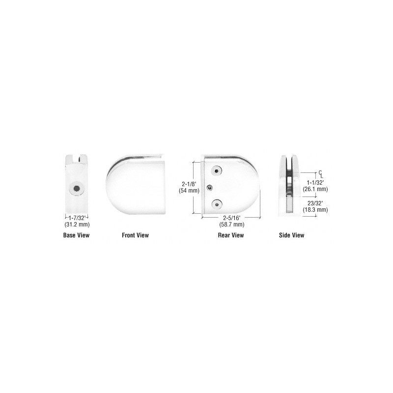Z412CH CRL srie Z, Pinces de fixation arrondies, base plate, verre de 12,7 mm (1/2 po) d'paisseur, chrome