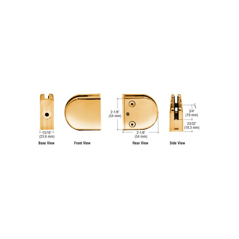 Z406GP CRL srie Z, Pince de fixation en zinc arrondie, base plate, verre de 6,3 et 8 mm (1/4 et 5/16 po) d'paisseur, plaqu or