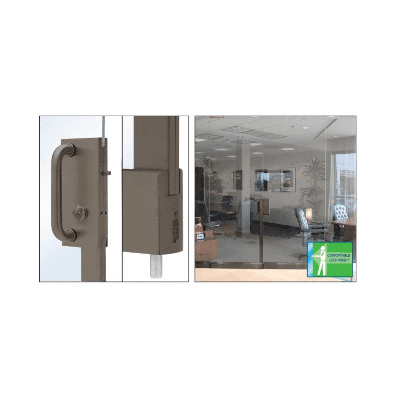 Cette serrure centrale CRL 102 x 254 mm (4 x 10 po) dispose d'un pêne étendu qui se verrouille via le profilé de porte inférieur et sur le sol et d'un pêne horizontal qui s'enclenche sur l'huisserie ou sur la gâche adjacente montée sur verre. Il peut être entièrement actionné à une distance appropriée au-dessus du sol à l'aide d'une serrure Adams Rite 1860-02 intégrée, dotée d'une tige extensible modifiée qui permet au pêne d'entrer dans le sol. Le profilé de rebord étroit, situé entre la serrure centrale et le profilé inférieur permet de camoufler la tige extensible. Il comprend une poignée de type D dos à dos de 203 mm (8 po), un bouton tournant à l'intérieur et un cylindre à clé à l'extérieur. REMARQUE RELATIVE À VOS COMMANDES : Ce système innovant est prévu pour usiner des portes neuves uniquement. Les applications converties ne sont pas recommandées car la partie inférieure du profilé de porte doit être modifiée en usine pour pouvoir recevoir le pêne à tige extensible, et le verre de la porte requiert une encoche spécifique pour pouvoir recevoir la serrure centrale. Veuillez contacter le service technico-commercial pour toute question relative à votre commande.