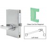 Cette serrure centrale à ressort CRL pour porte en verre avec fonction de bureau s'installe facilement sans avoir recours à des boulons, du silicone ou du ciment. Disponible dans quatre finis attrayants pour porte en verre lourd de 12 mm (1/2 po) d'épaisseur. Des joints supplémentaires sont conçus pour des portes en verre de 9,5 mm (3/8 po) d'épaisseur. L'actionnement de la serrure varie selon la fonction de verrouillage. Des serrures personnalisées aux nombreuses d'options sont disponibles sur commande en contactant le service technico-commercial CRL. Fonction de verrouillage du bureau : Le pêne est actionné par la béquille de chaque côté (sauf quand la béquille à l'extérieur est verrouillée par le bouton de la têtière) ou par une clé à l'extérieur. Afin d'empêcher toute infraction, le verrou auxiliaire de la serrure bloque le verrou principal. Le fait de tourner la béquille intérieure rétractera systématiquement le mécanisme de verrouillage et permettra la sortie. Verrouillage d'entrée : Le pêne est actionné par la béquille de chaque côté (sauf quand le pêne dormant est installé en saillie). Les pênes dormants sont actionnés depuis l'extérieur par clé et depuis l'intérieur par barrette tournante. Le fait de tourner la béquille intérieure rétractera le pêne demi-tour et le pêne dormant simultanément afin de permettre la sortie. Verrouillage de couloir : Le pêne est actionné par la béquille de chaque côté. Le fait de tourner la béquille intérieure rétractera systématiquement le mécanisme de verrouillage et permettra la sortie. Verrouillage de magasin : Le pêne est actionné par une béquille à l'intérieur et par une clé à l'extérieur. La béquille extérieure est toujours fixe. Afin d'empêcher toute infraction, le verrou auxiliaire de la serrure bloque le verrou principal. Le fait de tourner la béquille intérieure rétractera systématiquement le mécanisme de verrouillage et permettra la sortie. Cette serrure est utilisée principalement avec des gâches électriques. Verrouillage de salle de classe : Le pêne est actionné par la béquille de chaque côté, sauf quand la béquille à l'extérieur est verrouillée par une clé à l'extérieur. La clé permet d'actionner le verrou et de déverrouiller la béquille extérieure. La béquille intérieure est toujours prête l'emploi.