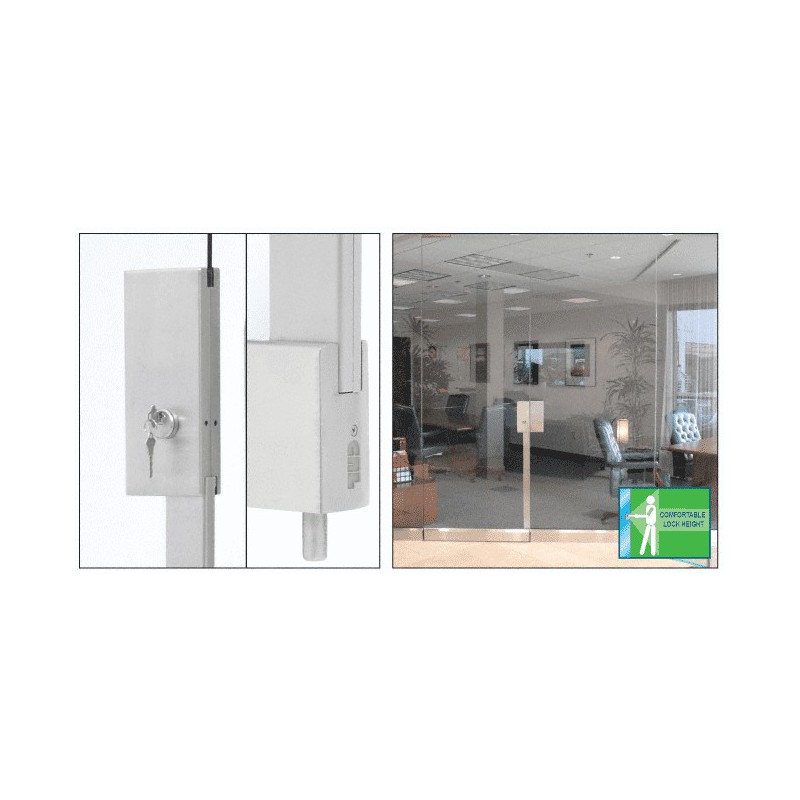 Cette serrure centrale CRL 102 x 254 mm (4 x 10 po) dispose d'un pêne étendu qui se verrouille via le profilé de porte inférieur et sur le sol. Il peut être entièrement actionné à une distance appropriée au-dessus du sol à l'aide d'une serrure Adams Rite 1860-01 intégrée, dotée d'une tige extensible modifiée qui permet au pêne d'entrer dans le sol. Le profilé de rebord étroit, situé entre la serrure centrale et le profilé inférieur permet de camoufler la tige extensible. La serrure centrale est bidirectionnelle et comporte une barrette tournante à l'intérieur ainsi qu'un cylindre à clé pour l'extérieur. Vous pouvez les commander avec ou sans poignée de type D dos à dos de 203 mm (8 po). REMARQUE RELATIVE À VOS COMMANDES : Ce système innovant est prévu pour usiner des portes neuves uniquement. Les applications retrofit ne sont pas recommandées car la partie inférieure du profilé de porte doit être modifiée en usine pour pouvoir recevoir le pêne à tige extensible, et le verre de la porte requiert une encoche spécifique pour pouvoir recevoir la serrure centrale. Veuillez contacter le service technico-commercial pour toute question relative à votre commande.