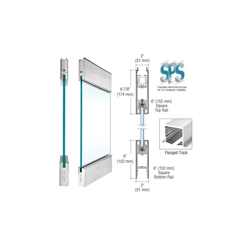 S112S2SA CRL Porte coulissante/pivotante rversible sur rail standard, SPS, type 2, avec profils suprieur et infrieur carrs, 152 mm (6 po), acier inoxydable bross