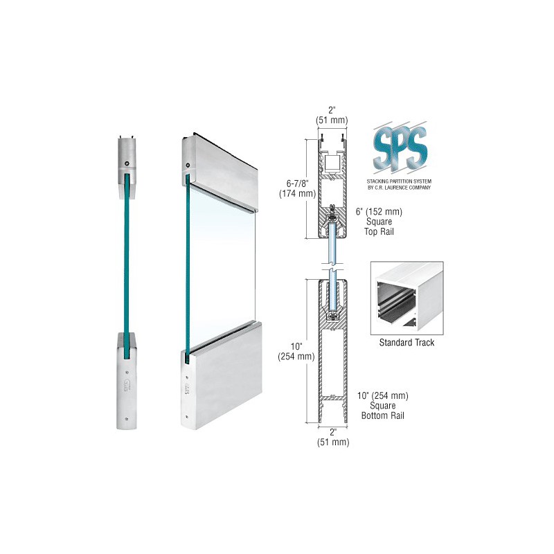 Profilé de porte carré de 152 mm (6 po) sur la partie supérieure et profilé de porte carré de 254 mm (10 po) sur la partie inférieure à utiliser avec du verre trempé de 12,7 mm (1/2 po) d'épaisseur. Vous pouvez choisir parmi cinq configurations de rangement standard, ainsi qu'une sélection infinie de configurations personnalisées afin de les adapter à votre projet. Vous pouvez obtenir un ensemble de panneaux coulissants ou une combinaison de panneaux coulissants et pivotants. Finis disponibles Anodisé satiné* Bronze anodisé noir* Acier inoxydable brossé* Laiton poli* Acier inoxydable poli* * Fini revêtement