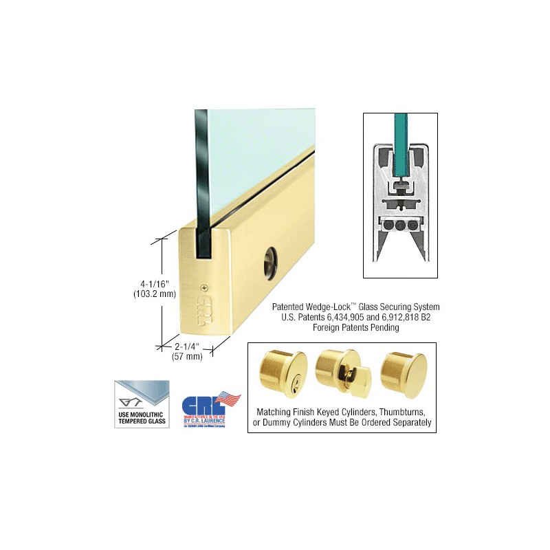 DR4SSB58CL CRL Profil de porte carr, avec serrure, 102 mm (4 po), verre de 15,9 (5/8 po) d'paisseur, longueur sur mesure, laiton poli