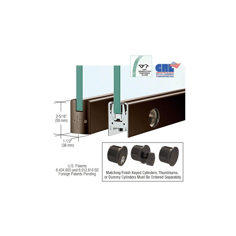 DR2SDU38SL CRL Profil de porte, avec serrure, profil bas, verre de 12,7 mm (1/2 po) d'paisseur, longueur sur mesure, bronze anodis noir