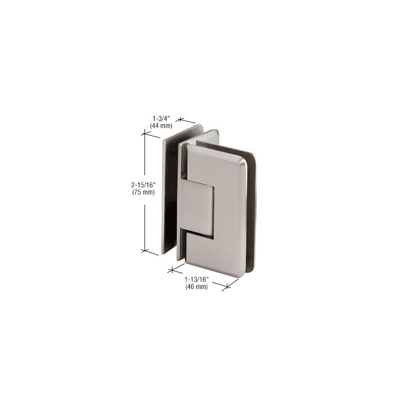 Les charnières professionnelles CRL de la série Trianon 092 sont conçues pour une épaisseur de verre de 6 à 8 mm (1/4 à 5/16 po). Les cinq styles, y compris platine murale et verre-verre, permettent une véritable souplesse de conception. Les charnières Trianon peuvent être utilisées pour fixer des surfaces en verre lors de l'installation de portes battantes. Ces éléments, disponibles dans plusieurs finis décoratifs, sont dotés d'angles arrondis et de bords biseautés. Les charnières Trianon sont fabriquées en laiton massif et équipées d'un dispositif de centrage automatique pour l'alignement des portes lorsque ces dernières se trouvent à 15° du centre. Ces éléments sont équipés d'un axe d'articulation réversible pour une fermeture de porte pré réglée à 5°, en option. Cinq modèles distincts, à savoir deux styles platine murale et trois styles verre-verre. Axe d'articulation réversible standard : chaque charnière Trianon est équipée d'un axe d'articulation réversible. Un côté de l'axe est prévu pour une configuration à 90°. Le côté opposé est prévu pour une configuration à 85°. Les charnières Trianon standard sont pré réglées à 90°. Les modèles excentrés sont vendus avec l'axe pré réglé à 85° (fermeture de 5° supplémentaires vers l'intérieur de la douche). Pour activer l'autre côté, faites pivoter l'axe (sans le retourner). Si vous utilisez deux charnières avec une épaisseur de verre de 6 ou 8 mm (1/4 ou 5/16 po), veillez à choisir une porte de 28 kgs (62 lb) et de 711 mm (28 po) de large au maximum. Si vous utilisez trois charnières avec une épaisseur de verre de 6 ou 8 mm (1/4 ou 5/16 po), veillez à choisir une porte de 42 kgs (92 lb) et de 813 mm (32 po) de large au maximum. Données techniques :