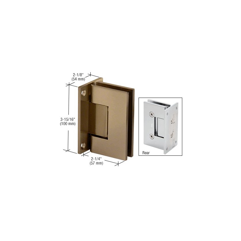 Les charnières professionnelles CRL de la série Vienna sont conçues pour une épaisseur de verre de 10 à 12 mm (3/8 à 1/2 po). Disponible dans les styles platine murale et verre-verre, permet une véritable souplesse de conception. Les charnières de la série Vienna sont fabriquées en laiton massif et leurs pièces mobiles (axes et ressorts) en acier inoxydable. L'emplacement stratégique des deux axes à l'intérieur de la charnière permet plusieurs types de gabarit et convient aux deux techniques de montage de charnières de portes de douche. Cela permet d'installer les charnières Vienna avec leur propre encoche CRL en forme d'oreille de souris ou, dans certains cas, de s'adapter aux encoches en forme d'oreille de souris de marques concurrentes. D'autre part, les deux axes peuvent être déposés pour un réglage plus précis. La charnière Vienna peut alors s'insérer dans l'encoche rectangulaire à angles droits CRL, ou dans certains cas, dans des encoches rectangulaires à angles droits de marques concurrentes. Si vous utilisez deux charnières avec une épaisseur de verre de 10 et 12 mm (3/8 et 1/2 po), veillez à choisir une porte de 50 kgs (110 lb) et de 914 mm (36 po) de large au maximum. Si vous utilisez trois charnières avec une épaisseur de verre de 10 et 12 mm (3/8 et 1/2 po), veillez à choisir une porte de 63 kgs (140 lb) et de 914 mm (36 po) de large au maximum. Données techniques :