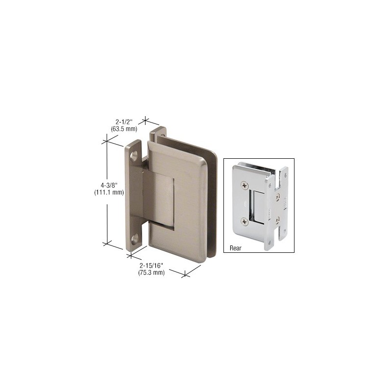 Les charnières série Victoria CRL ont la capacité de soutenir des portes plus larges, plus lourdes, avec un poids de porte maximal de 63,5 kg (140 livres) et une largeur d'espacement de 1 m (39 po) avec seulement deux charnières. REMARQUE ,/b>: Ne pas utiliser trois charnières. Ceci produit un aspect sans cadre en réduisant la quantité de quincaillerie nécessaire. Ces charnières utilisent une tige de renfort intégrée pour réduire au minimum la flexion de la plaque de serrage pour créer une puissance exceptionnelle. Ils offrent également une force accrue de centrage automatique et les ressorts en acier inoxydable trempé produisent durabilité accrue. Pour le verre trempé de sécurité de 10 et 12 mm (3/8 et 1/8 po). Sept finis prisés et finis personnalisés disponibles.