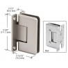 Les charnières série Victoria CRL ont la capacité de soutenir des portes plus larges, plus lourdes, avec un poids de porte maximal de 63,5 kg (140 livres) et une largeur d'espacement de 1 m (39 po) avec seulement deux charnières. REMARQUE ,/b>: Ne pas utiliser trois charnières. Ceci produit un aspect sans cadre en réduisant la quantité de quincaillerie nécessaire. Ces charnières utilisent une tige de renfort intégrée pour réduire au minimum la flexion de la plaque de serrage pour créer une puissance exceptionnelle. Ils offrent également une force accrue de centrage automatique et les ressorts en acier inoxydable trempé produisent durabilité accrue. Pour le verre trempé de sécurité de 10 et 12 mm (3/8 et 1/8 po). Sept finis prisés et finis personnalisés disponibles.