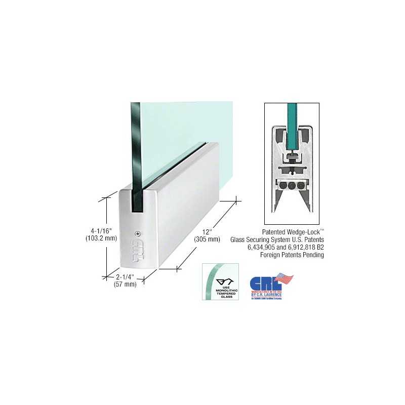 DR4SSA58P CRL Profil de porte carr, sans serrure, 102 mm (4 po), verre de 15,9 mm (5/8 po) d'paisseur, de type plaque de 305 mm (12 po), anodis satin