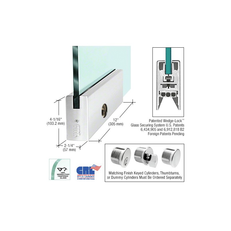 DR4SSA34PL CRL Profil de porte carr, avec serrure, 102 mm (4 po), verre de 19,1 mm (3/4 po) d'paisseur, de type plaque de 305 mm (12 po), anodis satin