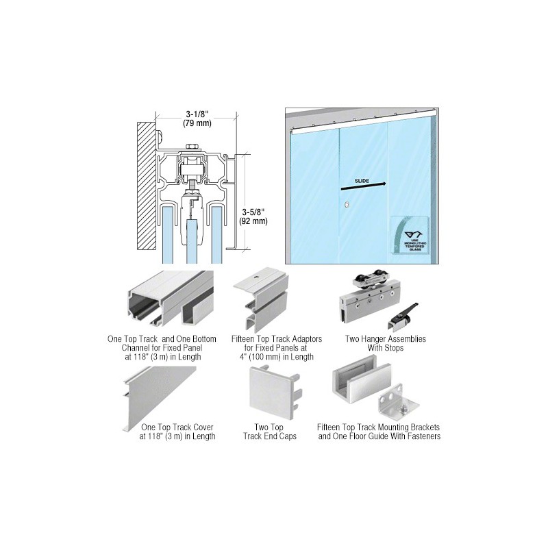CRL502 CRL Srie CRL50, Kits d'installation de porte coulissante simple avec deux panneaux fixes, montage mural