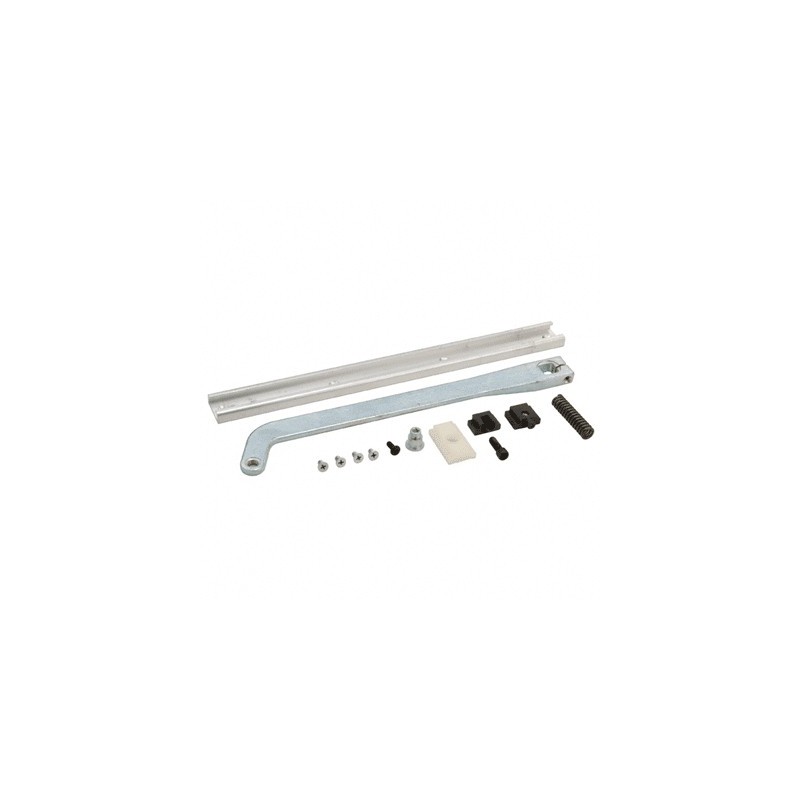 This Dormakaba RTS Offset Arm and Channel Set with mortise type slide-track for 3/4" (19 mm) deep rails is intended for use with Dorma RTS88 Overhead Concealed Door Closers. The assembly includes a slide-track, offset arm and all mounting hardware. It is used for aluminum, steel or wood doors, hung on 3/4" (19 mm) Offset Pivots or 4-1/2" (114 mm) wide butt hinges. Requires a minimum 3/4" (19 mm) top door rail channel depth.