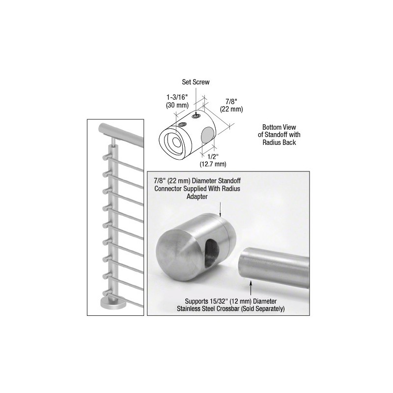 CRL's Stainless Steel Standoff Connectors are designed to support 12 mm diameter Stainless Steel Bar. Our easy slip fit design allows for clean seamless installations. No special welding or fabrication required. When attaching to the post use our Cat. No. SRB0LT 1/4"-20 x 1" (25 mm) bolt.