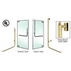 PA100B4GKSB CRL Poigne antipanique de porte extrieure, modle B, inverse, accs par cl, verrouillage en haut, fixation sur porte battante en verre, ct gauche, laiton satin
