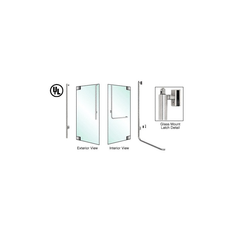 PA100JS4GPBS CRL Poigne de porte extrieure, modle JS, antipanique, inverse, plaque de retenue, verrouillage en haut, fixation sur porte battante en verre, ct gauche, acier inoxydable bross