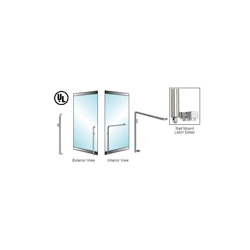 PA110K4LKBS CRL-Blumcraft Poigne d'extrieur antipanique, inverse, accs par cl, verrouillage en bas, type K, monte sur verre, pour porte battante, ct droit, acier inoxydable bross