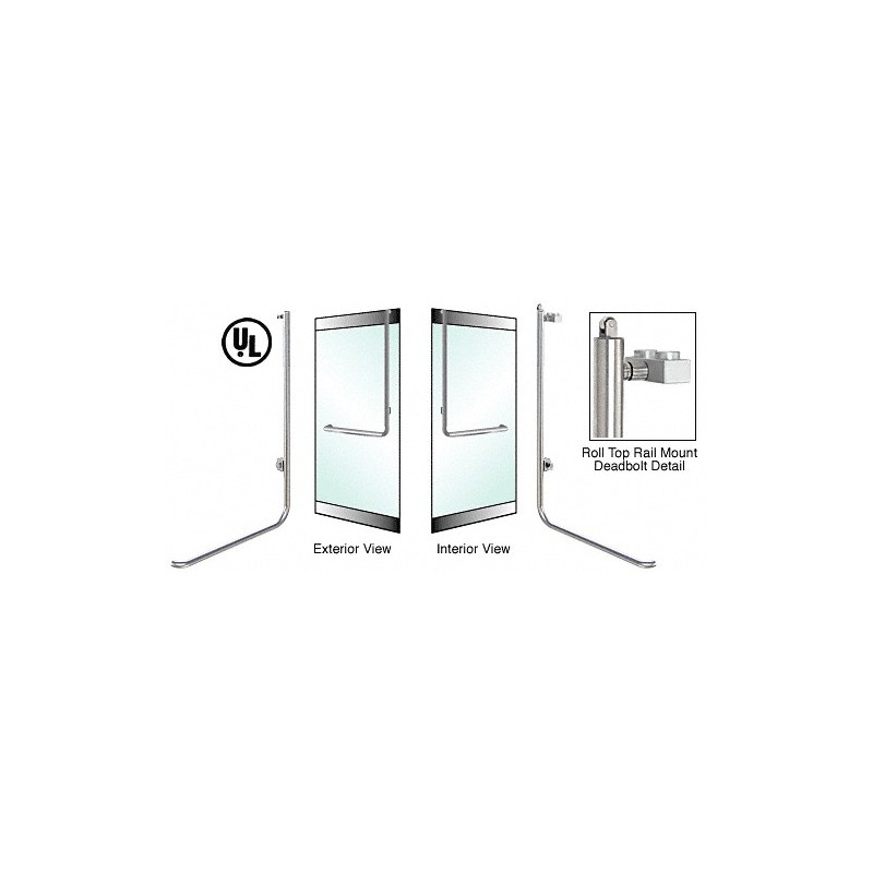 5DR100D4RKBS CRL Poigne de porte extrieure pne dormant pour verre de 19,1 mm (3/4 po), modle D, inverse, cylindre/cylindre, verrouillage en haut, fixation sur profil de rail suprieur de porte, ct gauche, acier inoxydable bross