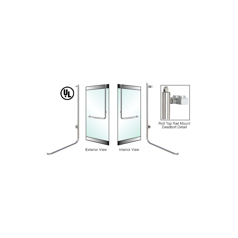 5DR100D4RKBS CRL Poigne de porte extrieure pne dormant pour verre de 19,1 mm (3/4 po), modle D, inverse, cylindre/cylindre, verrouillage en haut, fixation sur profil de rail suprieur de porte, ct gauche, acier inoxydable bross