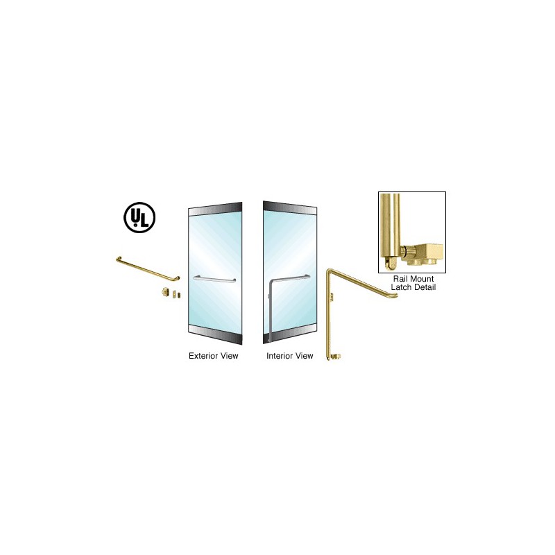 3P110A4RKPB CRL Poigne de porte extrieure pour verre de 19,1 mm (3/4 po), modle A, antipanique, inverse, accs par cl, verrouillage en bas, fixation sur profil de porte battante, ct gauche, laiton poli