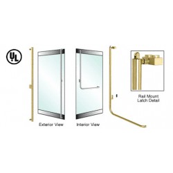 3P100F4RPSB CRL Poigne de porte extrieure pour verre de 19,1 mm (3/4 po), modle F, antipanique, inverse, plaque de retenue, verrouillage en haut, fixation sur profil de porte battante, ct gauche, laiton satin