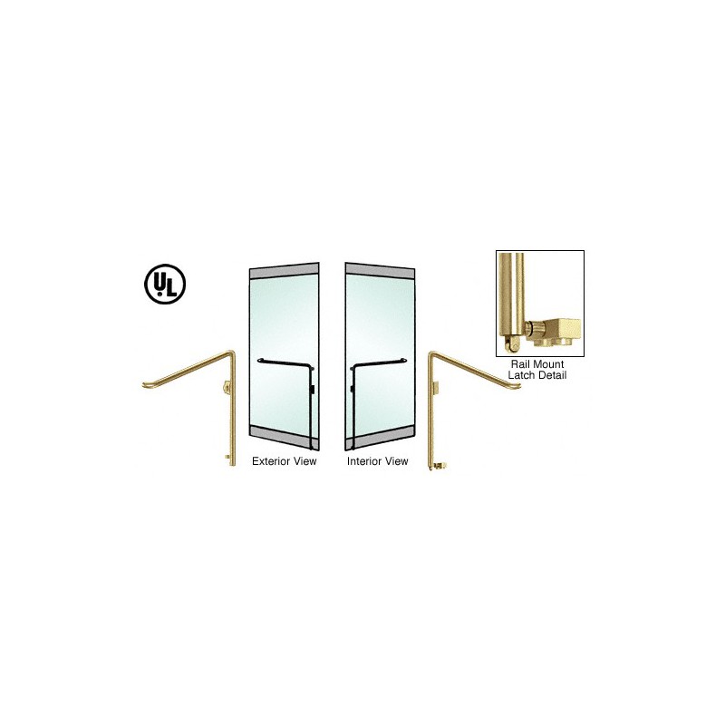 3P110C4RKBS CRL Poigne de porte extrieure pour verre de 19,1 mm (3/4 po), modle C, antipanique, inverse, accs par cl, verrouillage en bas, fixation sur profil de porte battante, ct gauche, acier inoxydable bross