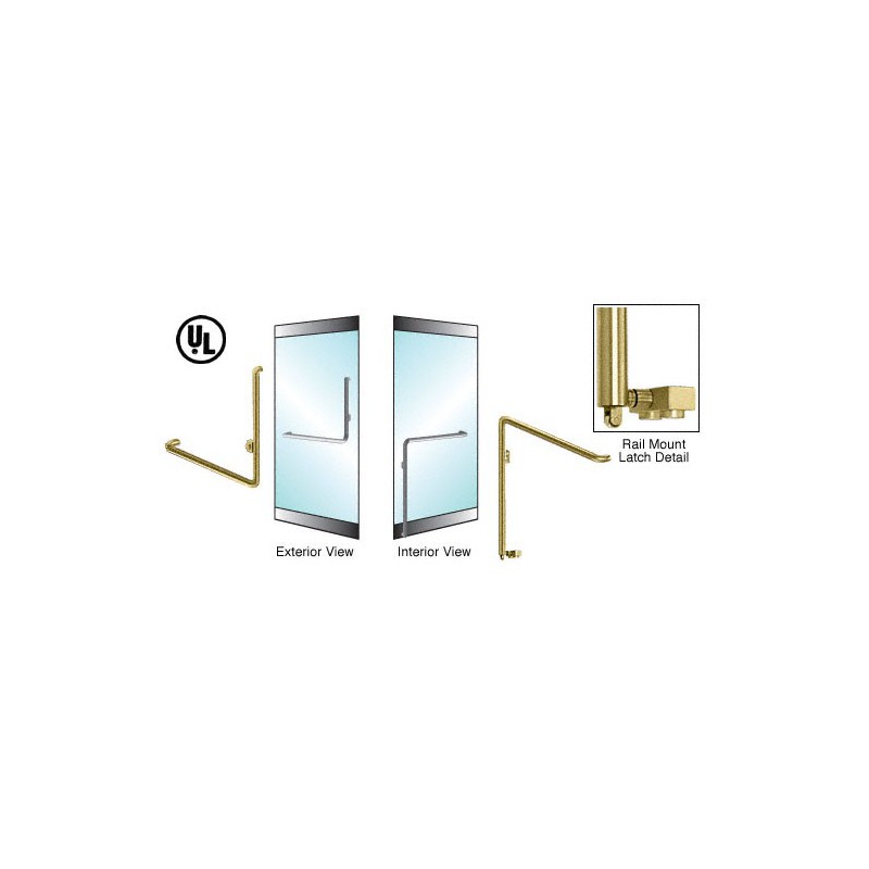 3P110B4RKSB CRL Poigne de porte extrieure pour verre de 19,1 mm (3/4 po), modle B, antipanique, inverse, accs par cl, verrouillage en bas, fixation sur profil de porte battante, ct gauche, laiton satin
