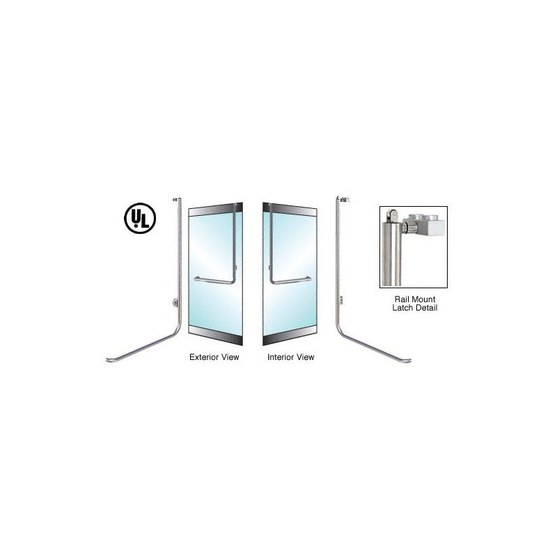 3P100D4RPPS CRL Poigne de porte extrieure pour verre de 19,1 mm (3/4 po), modle D, antipanique, inverse, sans cylindre, verrouillage en haut, fixation sur profil de porte battante, ct gauche, acier inoxydable poli