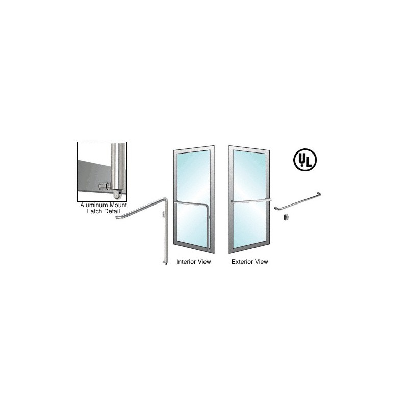 PA110A3APBS CRL Poigne de porte extrieure, modle A, antipanique, inverse, plaque de retenue, verrouillage en bas, fixation sur porte battante en aluminium, ct droit, acier inoxydable bross