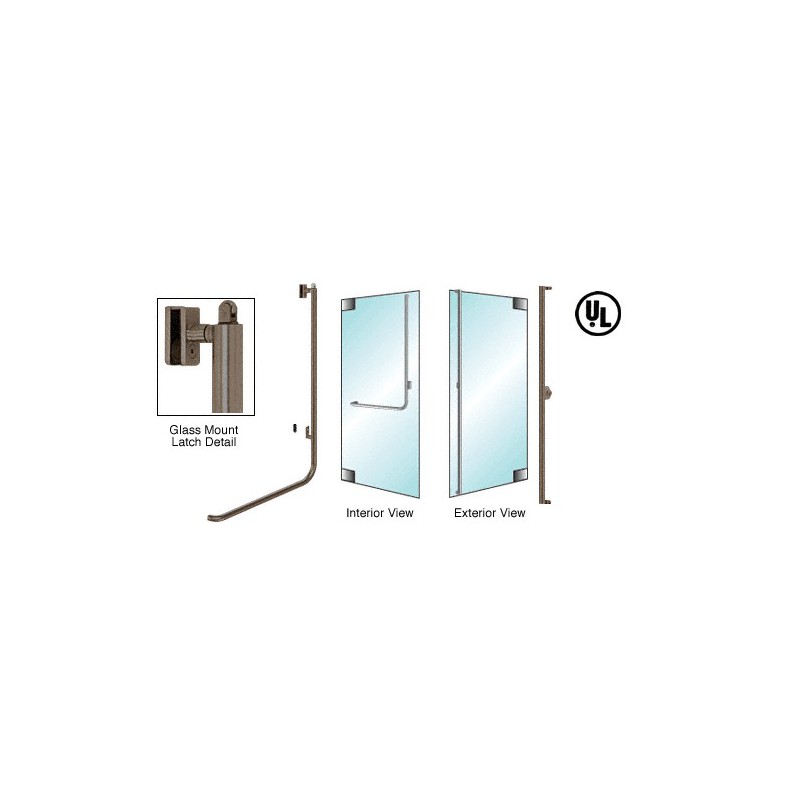 PA100F3GKSB CRL-Blumcraft Satin Brass Right Hand Reverse Glass Mount Keyed Access "F" Exterior, Top Securing Panic Handle