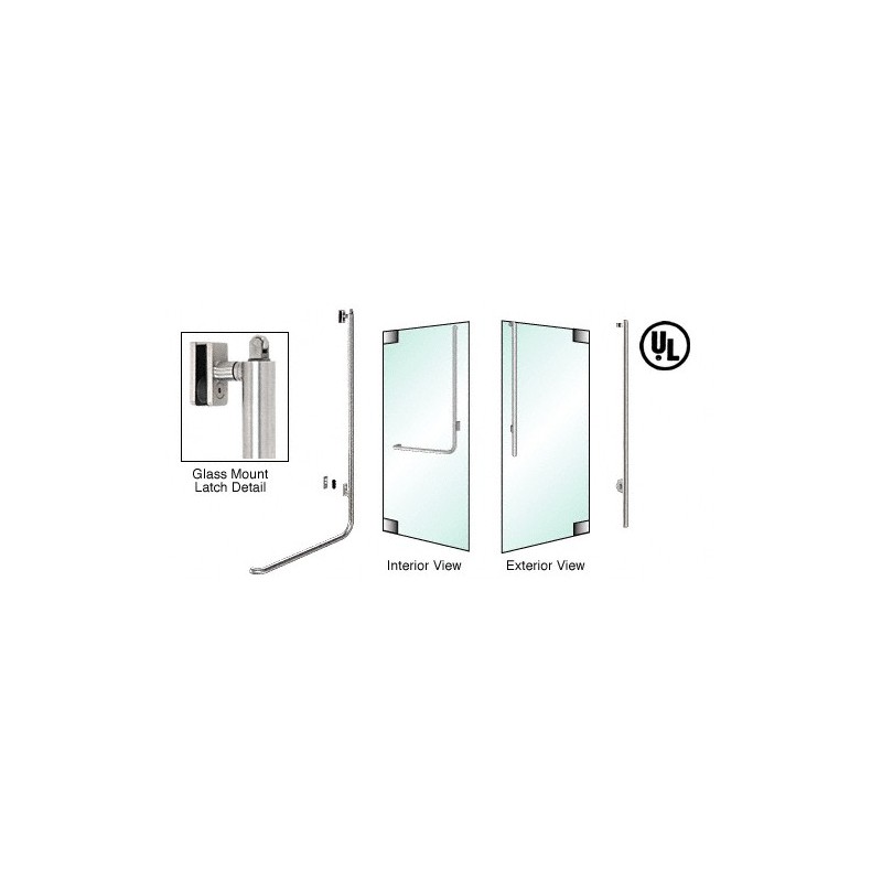 PA100JS3GPBS CRL Poigne de porte extrieure, modle JS, antipanique, inverse, plaque de retenue, verrouillage en haut, fixation sur porte battante en verre, ct droit, acier inoxydable bross