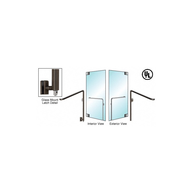 PA110C3GPBS CRL-Blumcraft Poigne d'extrieur antipanique, inverse, plaque de retenue, verrouillage en bas, type C, monte sur verre, pour porte battante, ct droit, acier inoxydable bross