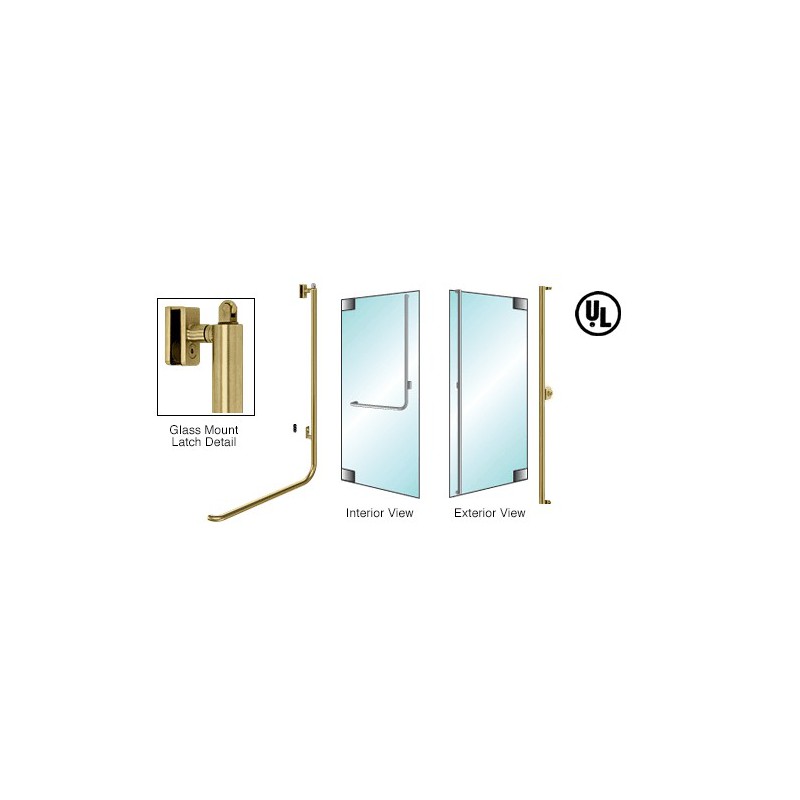 PA100F3GKSB CRL-Blumcraft Satin Brass Right Hand Reverse Glass Mount Keyed Access "F" Exterior, Top Securing Panic Handle