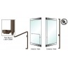 Fixation sur profilé (pour portes dotées de profilés sur toute la longueur) ou fixation sur verre (pour portes dotées de sabots)
