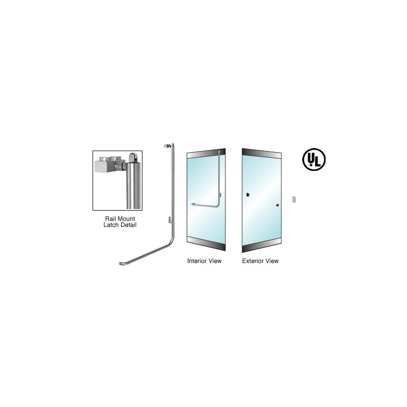 3P100Z3RPBS CRL Poigne de porte extrieure pour verre de 19,1 mm (3/4 po), modle Z, antipanique, inverse, sans cylindre, verrouillage en haut, fixation sur profil de porte battante, ct droit, acier inoxydable bross