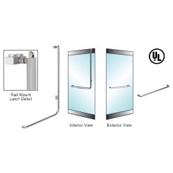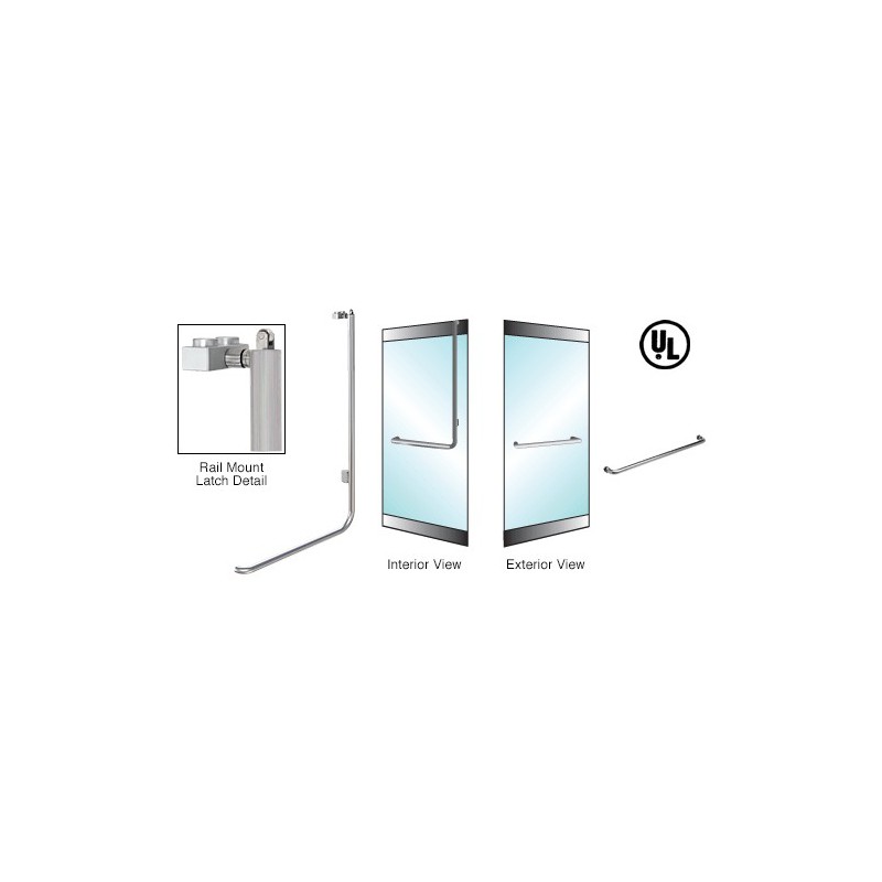 3P100A3RPSB CRL Poigne de porte extrieure pour verre de 19,1 mm (3/4 po), modle A, antipanique, inverse, plaque de retenue, verrouillage en haut, fixation sur profil de porte battante, ct droit, laiton satin