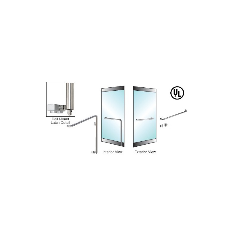 3P110A3RPBS CRL Poigne de porte extrieure pour verre de 19,1 mm (3/4 po), modle A, antipanique, inverse, avec plaque de retenue, verrouillage en bas, fixation sur profil de porte battante, ct droit, acier inoxydable bross